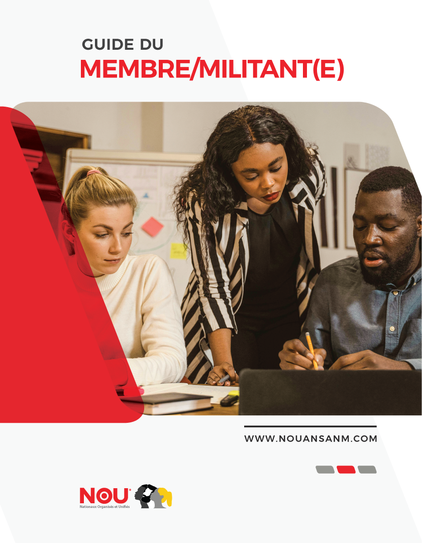Le Guide du Membre/Militant(e) de NOU est conçu comme un outil de référence et de formation pour tous ceux qui souhaitent s’engager activement dans la vie politique et citoyenne. Il présente les valeurs fondamentales du parti, ses orientations stratégiques, ainsi que les principes qui guident l’action militante au quotidien. Ce document offre aux membres et sympathisants une base claire pour comprendre la mission de NOU : promouvoir la démocratie, renforcer la participation citoyenne et défendre la justice sociale. Il met en avant les droits et devoirs du militant, les méthodes d’organisation, ainsi que les bonnes pratiques pour contribuer efficacement aux activités du parti. Il n’est pas seulement un manuel d’information ; il est aussi un instrument de mobilisation et d’unité. Il vise à inspirer chaque adhérent à devenir un acteur du changement, à porter la voix du peuple et à travailler pour un avenir plus équitable et solidaire.